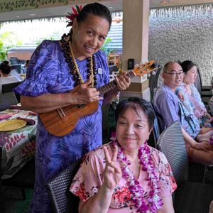 I felt a bit anxious about the seating arrangement at the buffet, but there was a newlywed couple visiting from Korea right in front of us, and we had a great time chatting during the meal. An auntie with a ukulele came over to welcome us and asked for song requests, but she was not pushy at all. When I gave her a tip to thank her, she seemed quite flattered.