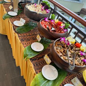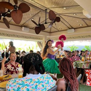 I participated because I wanted to go with the flow on the night of my arrival. The venue is on the 4th floor of the Royal Hawaiian Center, so if you're staying in Waikiki, you don't have to worry about transportation, right? We gathered after 5:00 PM and started with a meal. The menu is quite extensive, from drinks to desserts. There were tables surrounded by friends that were really lively. There were also tables where people who spoke different languages were happily chatting with each other. The highlight, of course, is the show itself. The spirit of "LET US ENTERTAIN YOU!!!" from all the performers was overwhelming, and it brought tears to my eyes. It happened several times. Speaking of which, I had a similar experience on the sunset dinner cruise "Star of Honolulu," provided by the Ohana (family) company of this show (which I participated in previously). I was fortunate enough to receive something from Presley, and I even felt, "Is it okay to have this much fun on the first day?" I sincerely thank everyone who was at the venue that day.