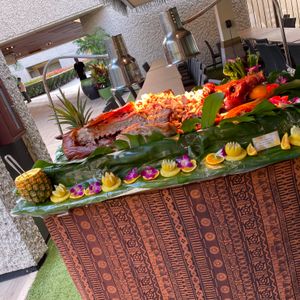 The buffet included a hula dance lesson and a show, making it a packed experience! The food was delicious, and I was able to eat until I was full. It was great that VIP guests could enjoy two drinks as well! Additionally, we could go to the food station from our VIP seats. During the show, we were also allowed to bring our drinks. The show featured not only hula but also performances by famous American singers, which was enjoyable! The final greeting was nice too! The staff member was handsome and very charming!