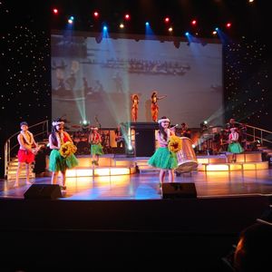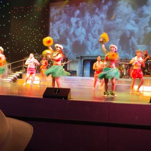 ハワイアン、ポリネシアンの踊りや曲をたくさん披露してくれました。途中プレスリーなども登場し、アメリカンな雰囲気も味わえました。
