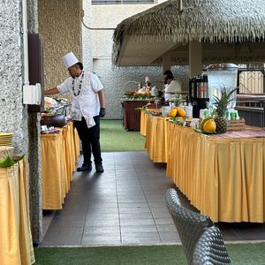At the buffet, we were able to enjoy a lot of Hawaiian dishes. Everything was delicious, and it made our time more enjoyable as we shared it with those around us. My wife particularly loved the pineapple and kept eating it (laughs).