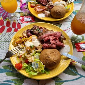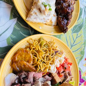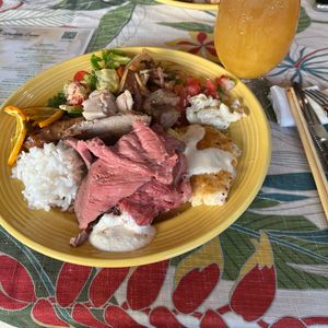 ステーキ、ローストポーク、ロミロミなどをブッフェでいただけます。
