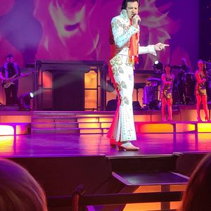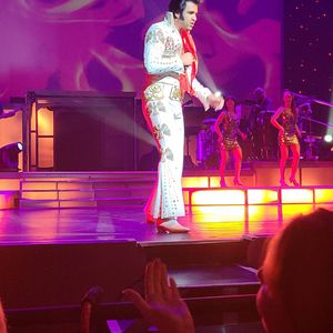 After that, we moved to the show, and sitting in the middle, it was truly impressive. The two lead female dancers were very beautiful, and their dancing was sharp and captivating. I wasn't very familiar with Elvis Presley due to my generation, so I couldn't tell how similar he was, but other guests were standing up and getting excited. I thought the structure of the show was wonderful.