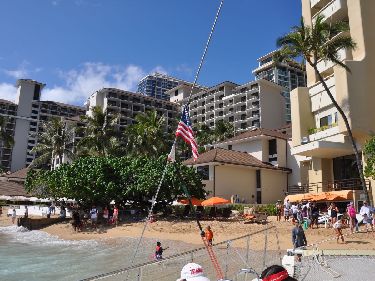 I had a great time. It felt like I was invited onto a friend's yacht, and everything was so friendly. I used it on the evening of my arrival in Hawaii, and I felt fine; I wished I could have stayed on longer. I regret not being able to speak English better, as it might have made the experience even more enjoyable. However, even without speaking English, the rainbow and sunset I saw from Waikiki Beach, along with the time spent with people from various countries, felt like a scene from a movie and still seems like a dream to me.