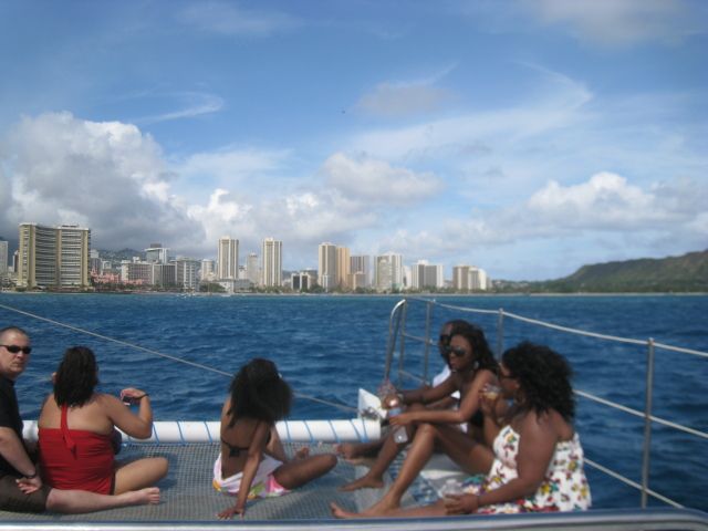 An outstanding way to enjoy the waikiki sunset. Hawaiil activites is da bomb. our friday dinner cruise got cancelled due to weather. after a phone call to hawaii activites, they quickly got us rescheduled for the saturday evening cocktail cruise on the Hilton Aloha catamarran. We practically had this 50 ft sailboat to ourselves. a 1 1/2 hour cruise along the shores of waikiki. a beautiful sunset and saw humpback whales surfacing and "sounding". a fantastic way to spend our last evening in honolulu. The crew was great, attending to our every request. Great drinks and music. If you want a relaxing way to spend the evening and enjoy being out on the water, take this cruise.