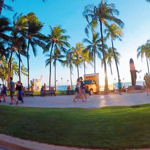 The weather was great, and it was the best. There was a parking lot nearby that offered 6 hours of free parking. Afterward, you can take a leisurely walk to Kahanamoku Beach. The sandy beach is wide and not crowded.