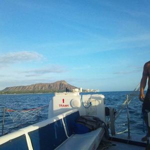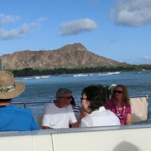 3世代6人で行きました。海の風は気持ちがよかった。ダイヤモンドヘッドを過ぎるあたりから波が大きくなり、嫁さんは船酔いしてしまいました。酔いやすい人でなければ大丈夫だと思います。ゆっくりクルーズして日の沈むころ戻りました。ワイキキの夕方の眺めも、ちょっと雲がかかったけど沈む夕日もとてもきれいでした。もう少し船長の話を理解できればもっと楽しめたのにと思いました。