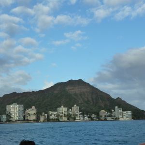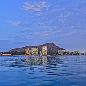 海から眺めるダイヤモンドヘッドとワイキキビーチは