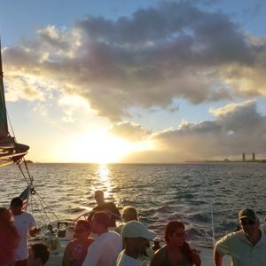 The instructions and directions to the location where we could park was not specific for those of us who had never been in the area before (we paid $26 to park). Our emailed confirmation told us to check in at 6:45pm and the catamaran would set sail at 7pm. Our group was first to arrive with plenty of time for checking in. Our catamaran did not arrive to pick us up until 7:15pm and it took another 10 minutes after that to get us all checked in to board. Once onboard, we realized the mai tais were weak so we drank beer instead. This was a very slow-paced cruise. We would like to come back but are more likely to experience a different catamaran cruise than this one.