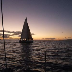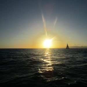 Fantastic sunset. From it's first touch of the sea, until it disappears below the horizon. Crew has but one goal, and that is to please all passengers. The quiet sound of the boat passing over the water under sail is soothing and romantic.