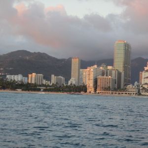 そして日が暮れてからは、ワイキキの夜景を海側から楽しむことができます。ダイヤモンドヘッドが暮れてゆく様子や、ホテル街のライトが夜空に浮かぶ光景は、期待していなかっただけに感動的でした!