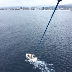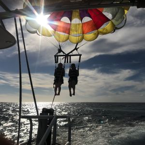 ハネムーンの記念に初のパラセイリングに参加しました。