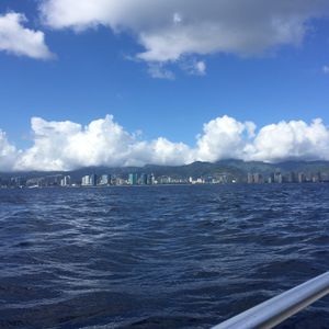 空も海も一面青く、ホテルが連なるワイキキは綺麗で絵はがきの中に入り込んだ気分になりました。