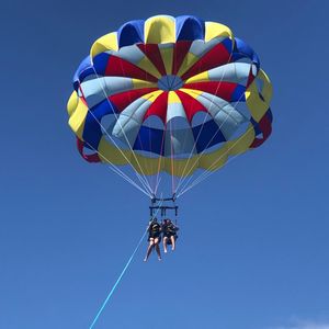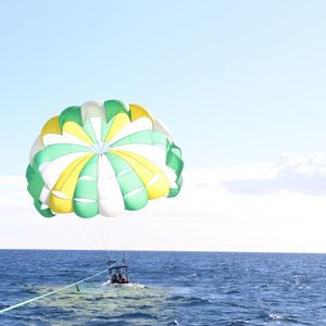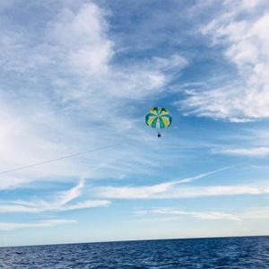 人生初のパラセーリングでした!天気も良く、眺めも最高でした!私たち以外の参加者は皆さん外国の方で、英語が苦手なので最初はとても不安でしたが、スタッフの方や他の参加者の方、皆さんとても気さくで、楽しくコミュニケーションを取ることができ、大満足です!!また、上空からイルカの群れを発見し、着地時にはすぐ近くでイルカを見ることができました!スタッフさん曰く、イルカが見れるのはレアとのこと。最高の思い出になりました!