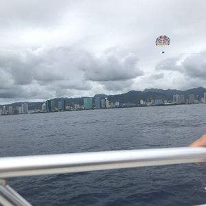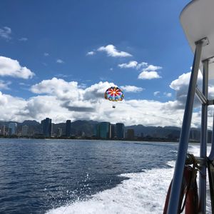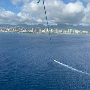 1回につき5分から10分のパラセーリング、とても満足です☆目の前にダイアモンドヘッド、下は真っ青な海、飛行機が飛ぶ横を優雅に飛んでいる感じです。最初は高さにびっくりしますが全然怖くなくのんびりできる感じです。が!本当のアクティビティは船なんじゃないかというくらい揺れます!救命胴衣はパラセーリング中のみの着用のためそれ以外は手すりにつかまってないととばされると本気で思うぐらいです。私たち含めた女性陣は悲鳴です!私たちは酔い止めを飲んでたため無事でしたが4名の方が船酔いしてました。参加人数によって船での待機時間があること、パラセーリングしてる方を見てるためずっと後ろ向きなこと、波の高さが要因だと思いますので酔いやすい方は事前の酔い止めを強くおすすめしますが、総合的に参加してよかったです!