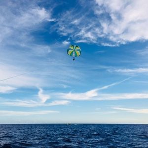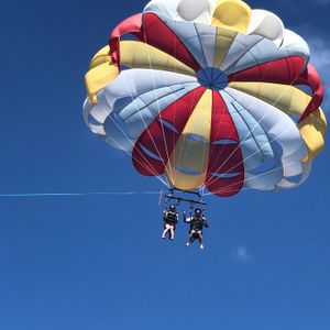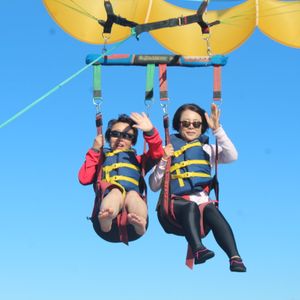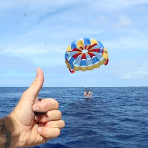 It was my first time parasailing! The weather was great, and the view was amazing! All the other participants were foreigners, and since I'm not good at English, I was really anxious at first. However, the staff and the other participants were very friendly, and I was able to communicate with them happily, which made me very satisfied! Also, we spotted a pod of dolphins from the sky, and when we landed, we were able to see the dolphins up close! According to the staff, it's rare to see dolphins. It became the best memory!