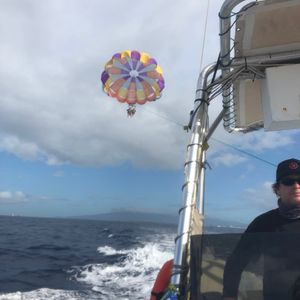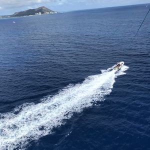 I was a bit worried when the pickup was delayed, but after waiting for about 20 minutes, I met up with the staff and felt relieved. After the pickup, I signed a waiver in the car, and as soon as we arrived at the location, we were guided to the boat, ready to set off into the waters of Waikiki. There were six groups on the boat (we were the only Japanese), and ten minutes later, the first group started parasailing! We were the last to go, and before sailing, the staff asked us, "Are you okay with getting wet?" to which we replied, "Okay!" What does "getting wet" mean? We enjoyed the stunning views at the highest point and began our descent, splashing into the water with a "splash!" Oh! So this is what "getting wet" means. The flight lasted about five minutes, and I thought, "I wish it could be a bit longer!" It was a very satisfying tour. It's something anyone can do, and it's definitely worth experiencing even if you're not in Hawaii.