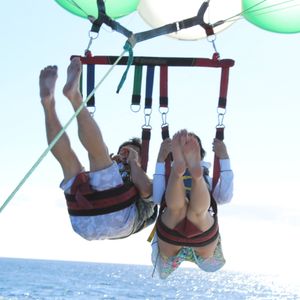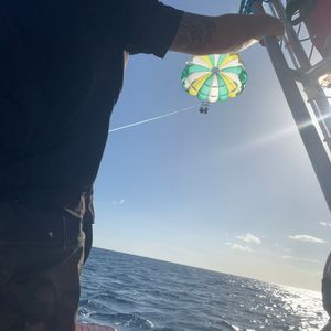 We had booked the parasailing for 150. The breathtaking view from the top was indescribable. It was beautiful! So much fun!!! The landing with a splash into the sea was also enjoyable.