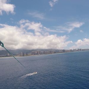 I enjoyed parasailing with a bit of fear. I had a great experience with a panoramic view of Waikiki, Hawaii. If you go to Hawaii, you should definitely try at least one marine sport. It really feels very American.