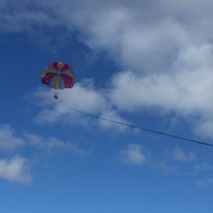 初めてのパラセイリングでした。いきなりライフジャケットをきて吊るされてgo!の流れがアメリカらしく良いのですが、第1号者の方は勇気が必要です。ちょっと怖いかも。。みんな気持ちよさそうにパラセイリングしていました(^。^)(私は少し怖かったです。そして、空の揺れに酔いました)