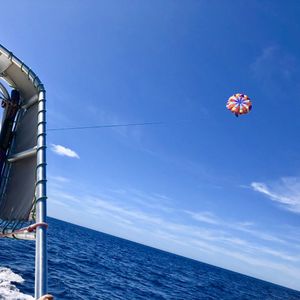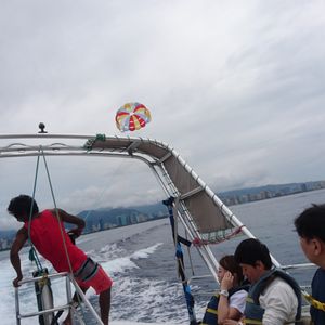 Unfortunately, the weather on the day was poor, and as soon as the boat departed, it started pouring rain. The waves were high, and the boat was rocking... I had to stay on board except when I was flying, and the seasickness from the swaying boat was overwhelming. The tour ended in the morning, but even after arriving at the hotel, I still felt nauseous until the evening, which was tough. The parasailing itself was a lot of fun, but the rocking of the boat was quite difficult to handle.
