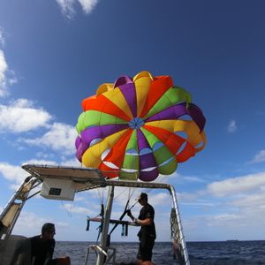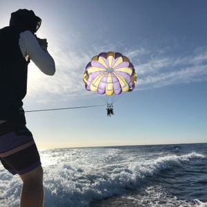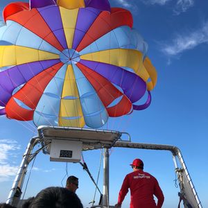 Parasailing is always available in tropical regions, but this tour was incredibly efficient compared to other companies I've tried. The pickup, parasailing, and drop-off were all very smooth. Thanks to that, I was able to relax in the afternoon. Also, it had been raining right up until just before we started, so we got to see a beautiful rainbow the whole time!