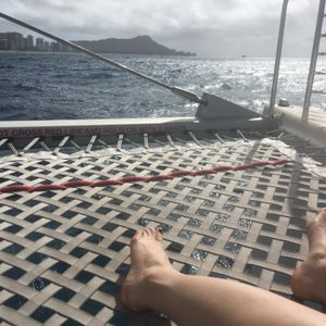 It was a little hard to get to (the hotels are so close together) so remember to get there early! We got there just in time. The boat is beautiful docked on the beach. The crew were so wonderful and friendly. We saw a bunch of turtles! It was amazing when they would surface for air RIGHT NEXT TO US! I wish the water was clearer, but it was still a great experience. Then we got to lounge in the boat and sail over off of Diamond Head. We saw spinner dolphins spinning out of the water. There were about 10 other people on the boat with us, but still cozy. They offer free snacks and you can purchase drinks (water, juice and alcohol) on the boat. We were back in time to join my family for lunch! perfect morning excursion at a great price!