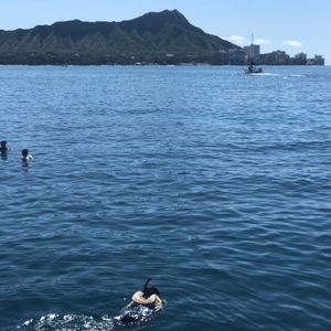 午前中、少し早めだけれど時間を有効に使ってシュノーケル&クルーズが楽しめて、スタッフもフレンドリーでダイアモンドヘッドやワイキキ沖からの景色も良かったです。参加した日は天候にも恵まれて、ホヌにも会えて最高の朝活でした。