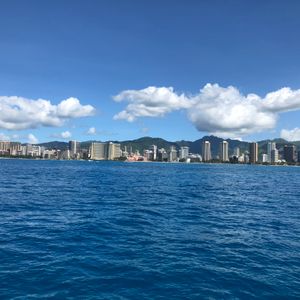 On the last day of our trip, we searched for activities near Waikiki and made a reservation the day before. The other participants were mostly foreigners, and there were no explanations in Japanese, but we managed to follow along. About 10 minutes after departure, snorkeling began. There weren't many fish, but we saw three sea turtles. The ocean was surprisingly beautiful. After that, we enjoyed sailing and took in views of Diamond Head and Waikiki from the sea. We had a lot more fun than we expected, even near Waikiki!