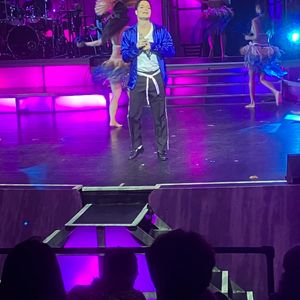 The atmosphere was filled with excitement. The Elvis impersonator, in particular, was fully committed to his showmanship and energized the entire theater. However, I was a bit disappointed that the same dancer appeared in different costumes for each scene. I understand this might be unavoidable due to the number of performers.