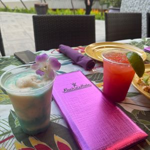 Although it rained and we had to stay indoors, the fire show and both the hula and Tahitian performances were really wonderful! It might be a good idea to line up early to secure good seats. The food was delicious as well. It was unfortunate that the drink pickup location was hard to find, and in the end, we ran out of time to get them.