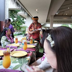 The staff members who performed hula during the buffet danced tirelessly, which was impressive. One of the musicians played the ukulele and sang a Teresa Teng song after realizing we were Japanese. My mother even participated in the hula dance lesson and was moved throughout the experience.