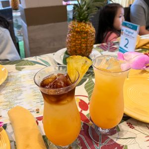 ウエルカムドリンク(マイタイカクテル)でお迎えしていただき、ウクレレですき焼きソングやbirthdayソングも席にて奏でて頂きました。ディナービュッフェはハワイ伝統料理など、お皿に盛り沢山、おかわり自由、とても美味しく