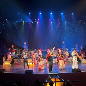 ショー前のディナービュッフェではがっつり食べれて、しかもとても美味しかった。尚かつ本格的なコンサートも聞け感無量です。というのも亡くなったスーパースターが出てくるのだから。懐かしさの余り涙ぐみました。年が替わって今度はどんな往年のスターが登場するか、どんどんバージョンを替えて頂けたら、是非ともリピしたいと思います。