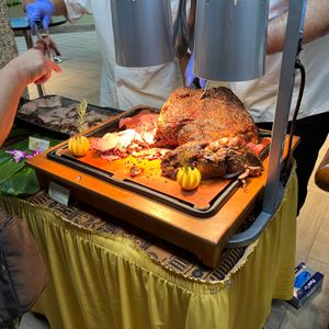 The food was amazing for a buffet. The welcome cocktail was delicious. I would recommend getting the fish and the pork. The desert was also delicious!