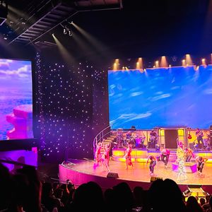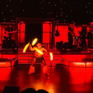 Theme of the show was how the music evolved around hawaii from 1920 to 2000.It was wonderful transition between different eras. Actors were very talented and sound quality was too good. I felt like I am listening to live original songs.Fireshow was amazing, very creative.I liked how they had catered to all different generations and brought a mix of everything. I did not even realize how time went by and enjoyed each moment of the show.After the show there was meet and greet activity at Lobby. Please spend some time taking pictures with them and appreciating their work. After the show , they also have bar with live musical with happy hour. I enjoyed some drinks at the bar. Definetly don't miss out on that, blue hawaii is the best !