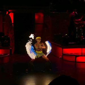 We were seated in the second floor, but we were only about 10 meters away from the stage, so we had a great view. The show featured performances by Elvis and Michael Jackson, and the final fire show was incredibly impressive.