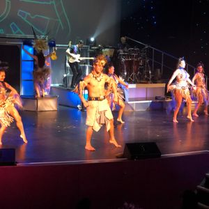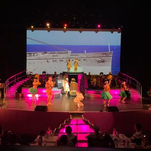 金額は決して安くないですが、とても迫力のあるフラショーでした♪私は1番良い席を予約したので、入場時やブッフェの料理を取りに行く際、優先的に案内してもらえて良かったです⭐︎ショーの中には客席からお客さんを舞台にあげ参加型の場面もあり、楽しめました♪案内は全て英語ですが、分からなくても楽しめると思います♪ブッフェ料理の種類は少ないですが、一部ハワイの伝統料理もあり、意外に美味しかったです!ドリンクは席の料金にもよりますが、私達は2杯ずつ付いていて、引き換え券もあり、日本語メニューもあり、分かりやすかったです⭐︎