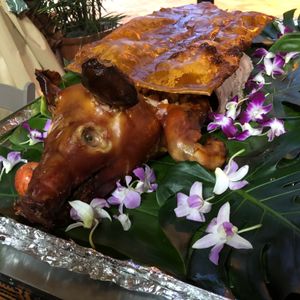 The buffet before the show started with a Mai Tai welcome drink, and they served a whole roasted pig, along with roast beef, so I was very satisfied with the delicious food.