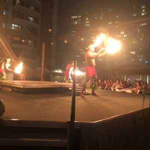 If there's a little rain, the show will still go on, so I recommend checking the weather forecast. If it looks like rain, bring a raincoat or umbrella! Since it's outdoors, there’s no roof. When we arrived at the Hilton, there were many buildings, and I got lost not knowing which one was which, so I asked a staff member. We took the JCB pink trolley from Waikiki, and we could get off right in front on the way there, but on the way back, it didn’t stop anywhere near, and we ended up walking around and getting soaked in the rain, which was tough. On the way back, you can either walk about 10 minutes to the bus stop at Eggs 'n Things to catch the JCB pink trolley or take a $2.75 bus from a nearby stop. By the time the show ends, it gets dark around there, and recently the safety in Waikiki has been declining, so if you have a larger group, I recommend taking a taxi!