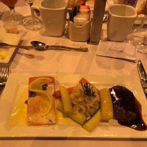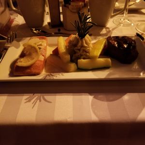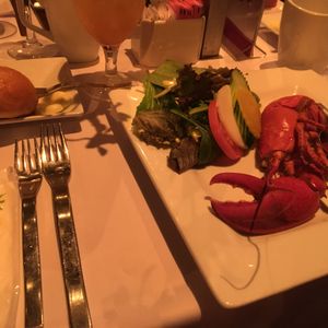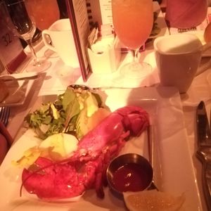 食事はロブスターが美味しかったです。全体的に量が多めだと思います。空腹で行きましたが、苦しくてデザートを残してしまいました。食事中にパンの追加、コーヒー、紅茶を配るスタッフがきてくれましたが、ステーキの食事中だったので、食後にコーヒーをと思い、断ってしまったら、二度と現れませんでした・・。コーヒー、紅茶はデザート前に冷めてしまいますが、配りに来たタイミングでほしい方は頼むと良いと思います。