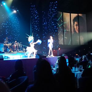 一品目は、ロブスター!ホールスタッフが席を回り、爪を割って、身を取り出してくれます。その後も、ドリンクを聞いてくれたり、次のお料理のタイミングを見てくれたり、とてもフレンドリーで温かい接客です。ゆっくり食事を楽しんだ後に、ショーが始まります。