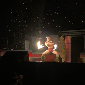 ショーは音楽も知っている曲ばかりで楽しかったです。マイケルさん目当ての参加だったのでダンスが見れて嬉しかったです。フラダンスも素敵で、ファイヤーダンスも最後に少しだけでしたが迫力があり楽しめました。時間が短いのでもっと長く見たかったです。連れは時差ぼけもあったせいか、お腹もいっぱいでショーの音楽が子守唄のようになり、うとうとしてました。(笑)
