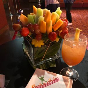 We received a welcome drink (alcohol) and enjoyed appetizers like fruits, nuts, and prosciutto while waiting for the venue to open.