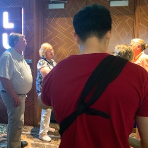 受付に到着したら、バーコードが印字された紙の発行が必要です。念のため16:40ごろに到着したら、一般では前には2組ほどしかいなかったです。縦並びに座るので遅くくると背の高い人の後ろになって見にくくなるので、早めがオススメです。一般より上の方が断然優先なので、入場から記念撮影の間がとにかく待ちます。着席しても、今度は後ろに並んでる人から遅めにきた人まで待つのでドリンク片手に長い。1周しか取れないブュッフェスタイルのフードを取るにも、人数が多いだけあって待ちます。フードは多めに取ることをお勧めします。並ぶのは苦じゃない方ですが、異国で英語が飛び交う中なので、ショー見てる時間より長いんじゃないかって感じてしまいます。でも、子供は意外にも特別な場所ということが分かるせいかぐずってる子はいませんでした。