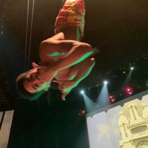 ショーは、まず目の前に降りてきた逆さ吊りの男性に驚き(事前に聞いていたのに)、