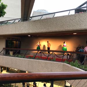 場所はワイキキのシェラトンホテル隣のロイヤルハワイアンセンターの4階でとても行きやすくわかりやすいです。18時集合だったので10分前くらいに行って受付でバウチャーを表示したらすぐに通してくれました。