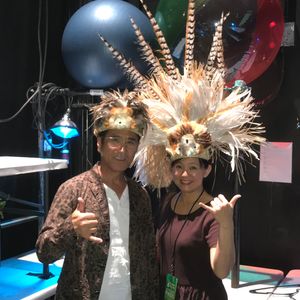 Backstage, there were many costumes for quick changes. They explained that each performer has to change in a very short time, which conveyed the difficulty of their work. I got to wear a large headdress for Tahitian dance. It was so big that I discovered I had to maintain my balance while dancing.