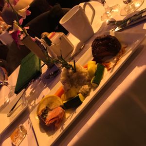 The food, including lobster, meat, and dessert, was all delicious. Being in the VIP section meant we were in the front row, and the intensity of the show was breathtaking! I considered the cheaper tickets on the second floor, but I have no regrets at all. Being up front allowed the performers to come over for handshakes, and the service was great.