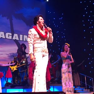 The show started with a Polynesian theme, set around Elvis landing in Hawaii. MJ also made an appearance. Since both of them have passed away, we can't see the real ones, but I enjoyed the American entertainment; the singing and dancing were great. I was satisfied.